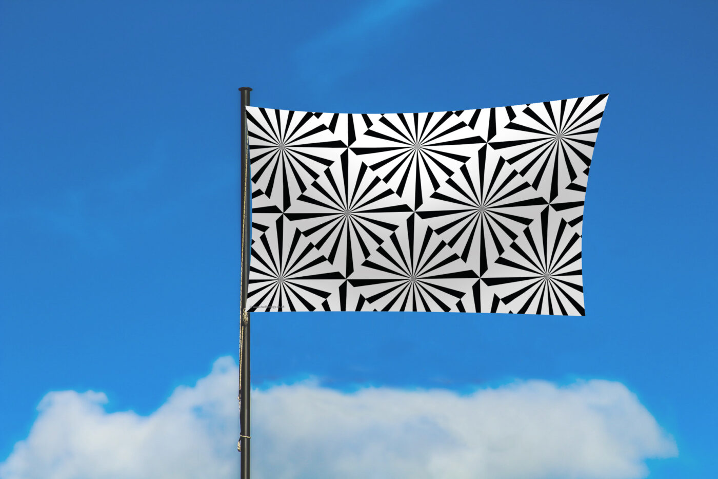 Eye catching black and white geometric flag with repeat pattern – certainly a unique flag that is sure to get you noticed.